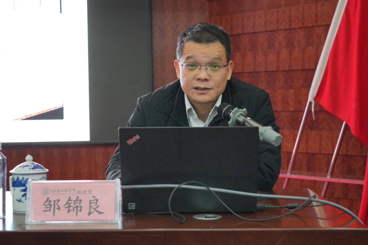 邹锦良以《认识江西历史,了解赣鄱文化——江西高校学子的必修课》为题,从七个维度层层展开,系统梳理江西文化的厚重底蕴,生动诠释其鲜活魅力。他先从“地理上的江西”切入,以“庐山云雾缭绕、鄱阳湖烟波浩渺”的诗意描述,勾勒出赣鄱大地的山川形胜与自然之美;继而在“名字里的江西”中,追溯“江右”“豫章”等古老称谓的历史变迁,串联起千年文明的时间长卷;在“课本里的江西”环节,他唤醒师生共同记忆——陶渊明笔下的田园牧歌、王勃盛赞的滕王阁胜景、朱熹讲学的白鹿洞书院,让经典文学与本土文化实现深度交融,引发全场共鸣。