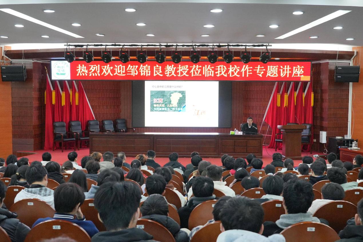 为深入学习贯彻党的二十届四中全会精神,激发文化创新创造活力,培养兼具专业能力与文化情怀的新时代人才,2025年11月19日下午,校图书馆特别邀请南昌大学图书馆馆长、教授、博士生导师邹锦良,在天工校区学术报告厅开展专题讲座。校党委委员、理事长助理、校长助理乐俊杰主持讲座并致辞,全校350余名师生齐聚现场,共赴这场赣鄱文化的精神盛宴。
